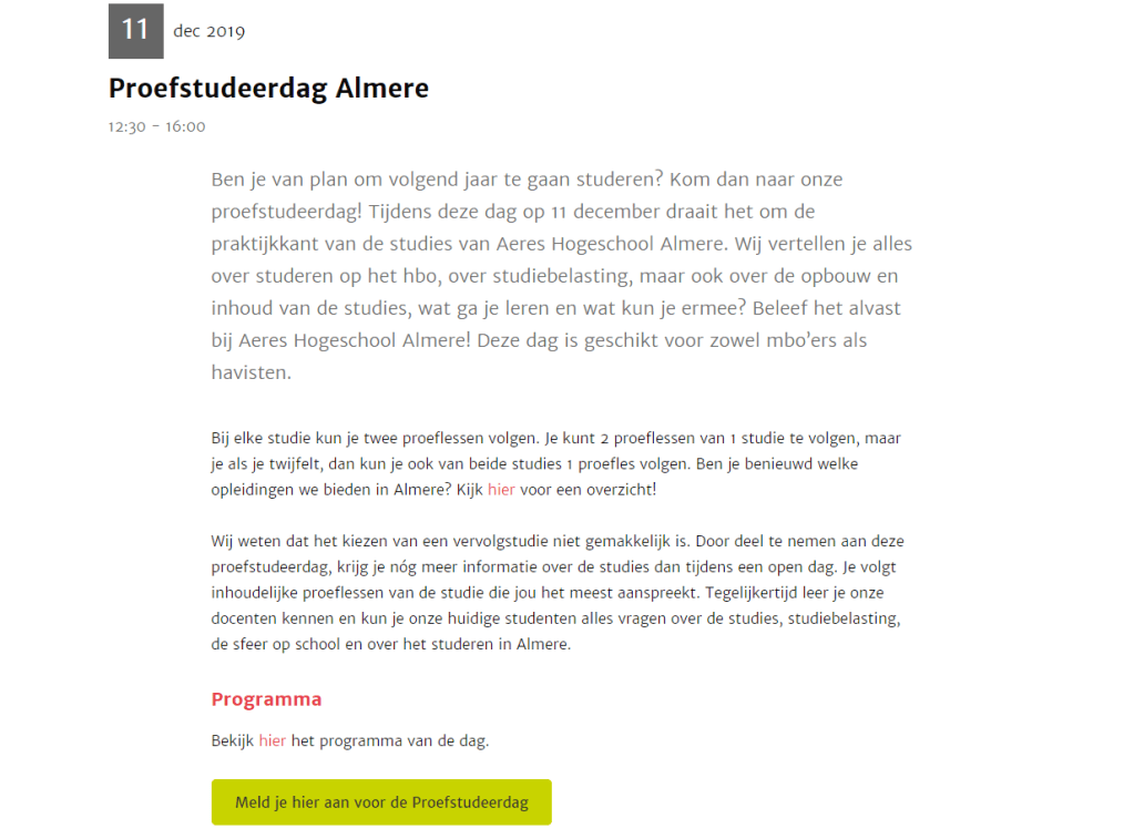 Voor de conversie zouden open dagen handig zijn of een proefstudeerdag (Voorbeeld ).