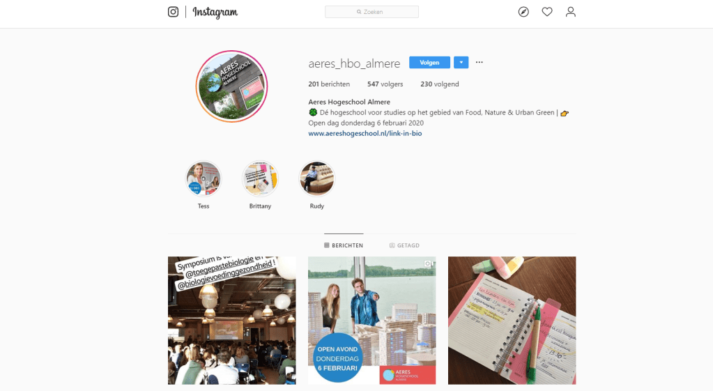 Aeres Hogeschool Almere is online te vinden op facebook, instagram, Linkedin en YouTube. Hieronder volgt een analyse van elk platform en de desbetreffende kanalen van AHA.