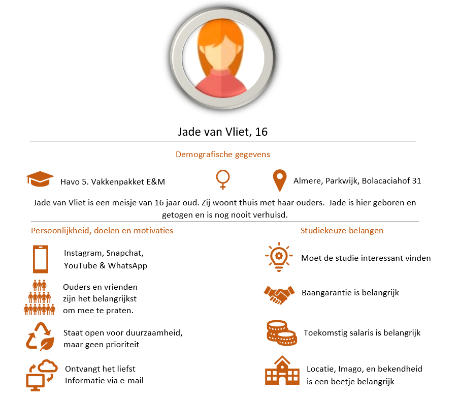 Aeres is een hogeschool in Almere met ‘groene’ opleidingen. In dit geval kijken we naar de opleiding Duurzame Bedrijfskunde en wat de doelgroep is voor de studie. Als voorbeeld neem ik dit persona. Ook is er een bijpassende customer journey voor Jade van Vliet voor het zoeken naar een opleiding.